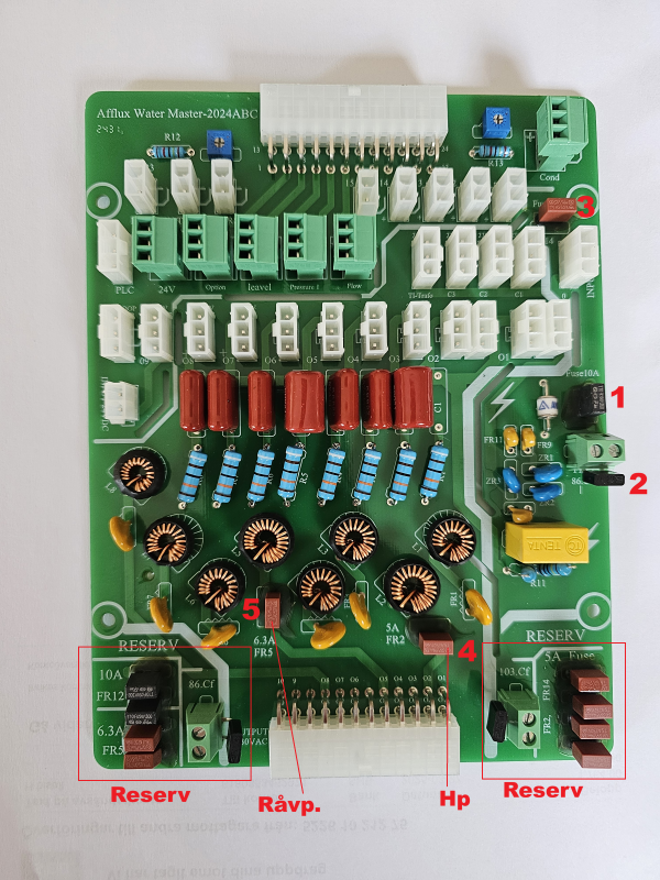 - Säkring 6.5A utgående matning till råvattenpump