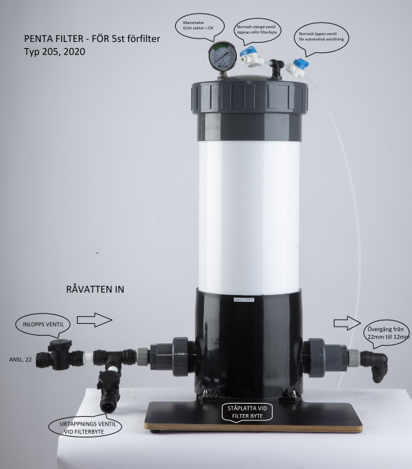 PENTA FILTER 20" med plats för 5st filter typ 2020 eller 205, (201)